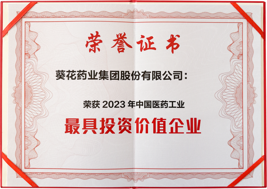 葵花藥業(yè)獲評(píng)“2023中國醫(yī)藥工業(yè)最具投資價(jià)值企業(yè)”